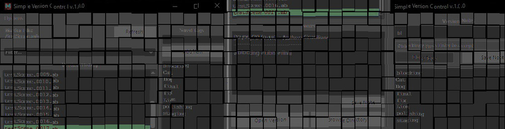 Please note that if you open a version file (numbered 0001, for example) and save an increment, you will be saving an increment of that version file, not the master one. The tool saves versions of the file currently opened. However, if you open the UI to manage your versions, you can freely open other files and versions and the UI will still be managing the versions of the master file indicated in the top-left corner of the tool window. If you wish to see the versions of other files, you have to reopen the UI.